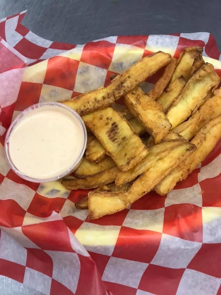 Mayo, Pickles, Onion, Lettuce, Tomato, Fried Gator Tail